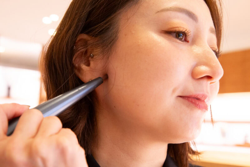 忙しくても自宅でのスキンケアなら続けられると、トレンドになっているのが「ながら美容」のガジェット。コロナ禍のころから注目を浴びてきたのが、自宅でも手軽にエステ級のケアができるEMS機器。電気刺激で筋肉を動かすことでリフトアップでき、5分間で効果を視覚化できるので、人気が集まるのも当然。だからこそ製品も多様化している。おすすめなのがペンサイズの「Beauty Face Stick Rin」で、目元、口元、フェイスラインなど顔全体をポーチにも収まる小さな1本でケア。持ち運びが簡単なので、空き時間や移動中など、どこでも美容タイムに早変わり。ペンのようなデザインなので、周囲に気づかれず施術が完了する。