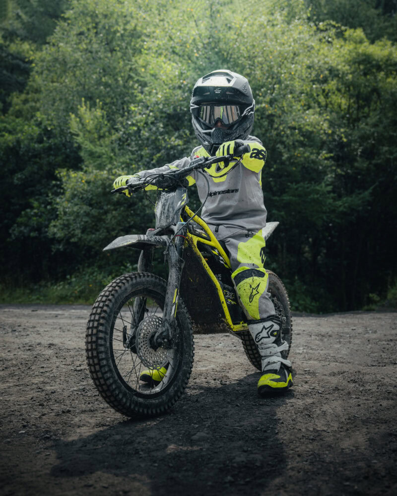 今回発表となったトライアンフ初となるジュニアライダー向けの電動オフロードバイクは、座って走るオフロードスタイルと、立って乗るトライアルスタイルを切り替えられる独自の2in1モジュラーデザインを採用。バランスを取ることを覚える最初の段階から技術的な地形を攻略する段階まで、ジュニアライダーの成長すべてを支えるために、ゼロから設計しはじめました。