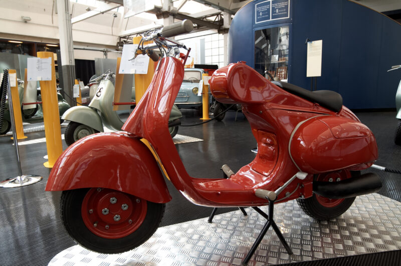 いまはバイクメーカーとして世界的に有名なピアッジオ社ですが、1884年の創業時は船舶パーツメーカーとしてスタートし、その後は鉄道車両や航空機製造へ事業を拡大。第二次世界大戦後の復興期に庶民の生活の足として開発したのがベスパなのです。1946年に発売開始となった初代モデルはは2ストロークエンジンの「ビービー」と響く甲高いエンジン音により、スズメバチ=ベスパという名前の由来にもなりました。