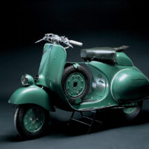 いまはバイクメーカーとして世界的に有名なピアッジオ社ですが、1884年の創業時は船舶パーツメーカーとしてスタートし、その後は鉄道車両や航空機製造へ事業を拡大。第二次世界大戦後の復興期に庶民の生活の足として開発したのがベスパなのです。1946年に発売開始となった初代モデルはは2ストロークエンジンの「ビービー」と響く甲高いエンジン音により、スズメバチ=ベスパという名前の由来にもなりました。